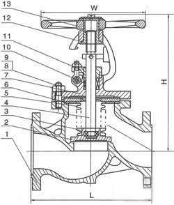 国标波纹管截止阀 主要零件材料