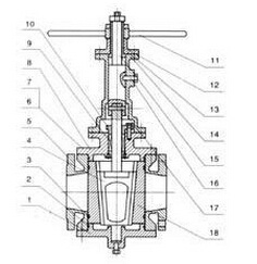当转动手轮,塞子将朝阀门的方向转动,同时带动阀片转动90度,当继续转动手轮,塞子将会下压,使阀门向两侧张开,阀片将紧紧的压在阀座上,使阀门关闭.